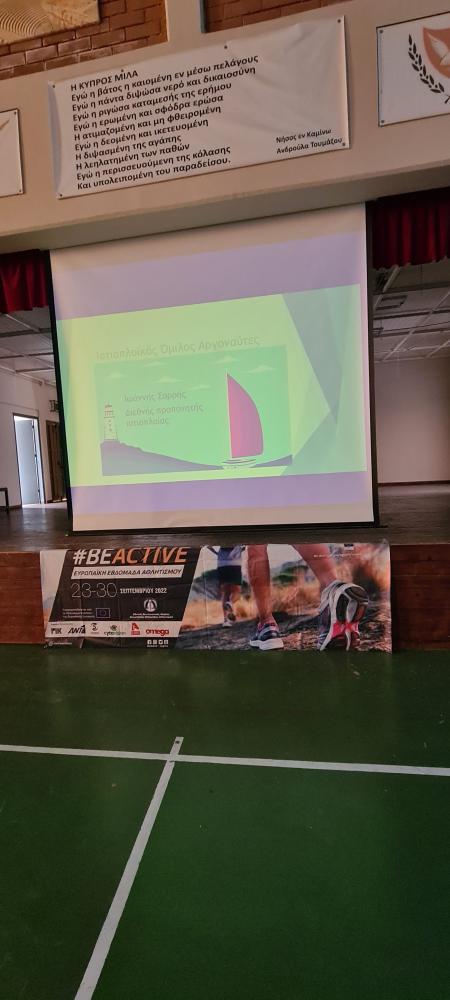 Γνωριμία με το άθλημα της Ιστιοπλοίας με ομηλητή τον πρόην προπονητή του παγκοσμιονίκη Ανδρέα Καριόλου κο. Γιάννη Σαρρή